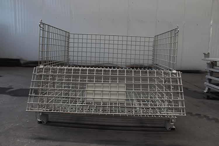移動(dòng)式美固籠外形輕巧,籠體除底框外都有鐵絲碰焊成的網(wǎng)片組合而成;網(wǎng)片與網(wǎng)片、網(wǎng)片與底框靠小連接件連接,可活動(dòng)。且前后面可打開,在堆垛后能取物,堆垛時(shí)承重在側(cè)面的網(wǎng)片上。該移動(dòng)式美固籠已完全具備可堆垛性、可折疊性及可搬運(yùn)性,日益成為物流流通的一種重要物流容器。