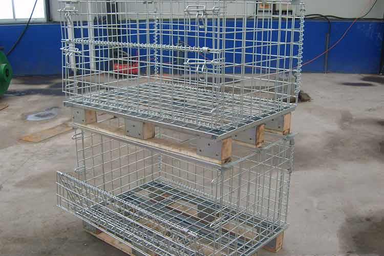 木托倉儲籠的主要材料為低碳鐵絲、槽鋼、熱軋鋼板等。該倉儲籠的外形非常的輕巧,籠體除底框外皆有鐵絲碰焊成的網片組合而成,網片與網片、網片與底框靠小連接件連接,可活動。在木托倉儲籠空籠時可折疊存放,充分利用空間。同時倉儲籠前面可打開,在堆垛后能取物,堆垛時承重在側面的網片上。