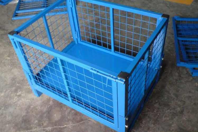 倉儲籠的主要原材料是高線拉成的鋼絲,一般絲徑是5mm,6mm,6.4mm。網(wǎng)片焊接的網(wǎng)目間距一般為50×100,100×100,50×50。倉儲籠底部采用U型鋼焊接而成,U型鋼是冷軋帶鋼軋機(jī)軋制而成,底部四角采用沖壓件一次沖制而成。倉儲籠采用Q195高線作為原材料,經(jīng)冷拔成型材。再通過碰焊形成半成品網(wǎng)片。在制作成網(wǎng)片后,可采用鍍鋅或噴塑進(jìn)行表面處理(倉儲籠大多數(shù)采用鍍鋅處理),表面處理完畢后就可以進(jìn)行組裝,即可制作成成品。